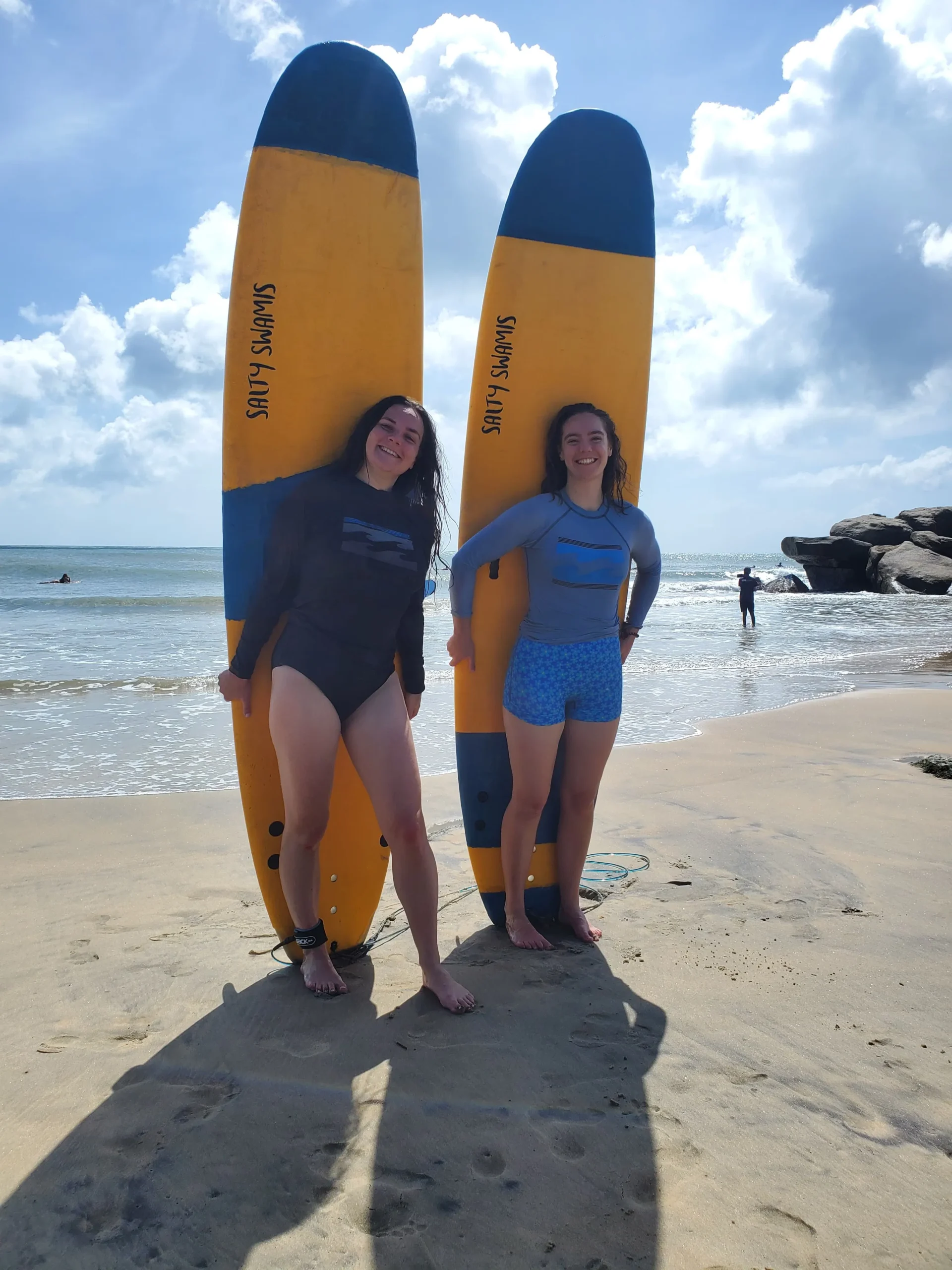 Weligama Beach is famous for its long, gentle waves and sandy bottom, making it the perfect place to learn how to surf or improve your skills. Our surf lessons are designed to be fun, safe, and confidence-building.